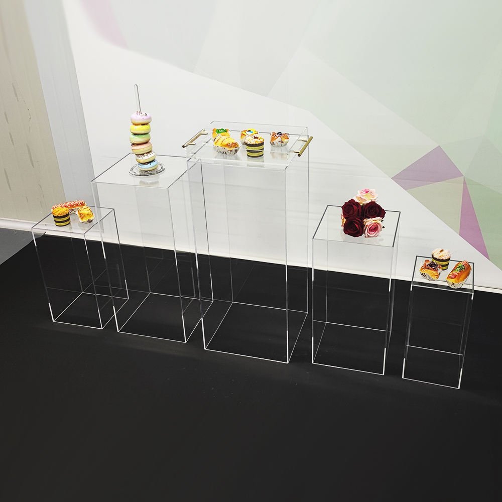 The versatility of this square acrylic pedestal is unmatched. Whether used as a centerpiece display or to elevate floral arrangements, cakes, or decor elements, its clean lines and minimalistic structure make it ideal for any setting. Perfect for weddings, birthdays, anniversaries, or corporate events, this elegant stand is a staple piece that is sure to impress your guests.
